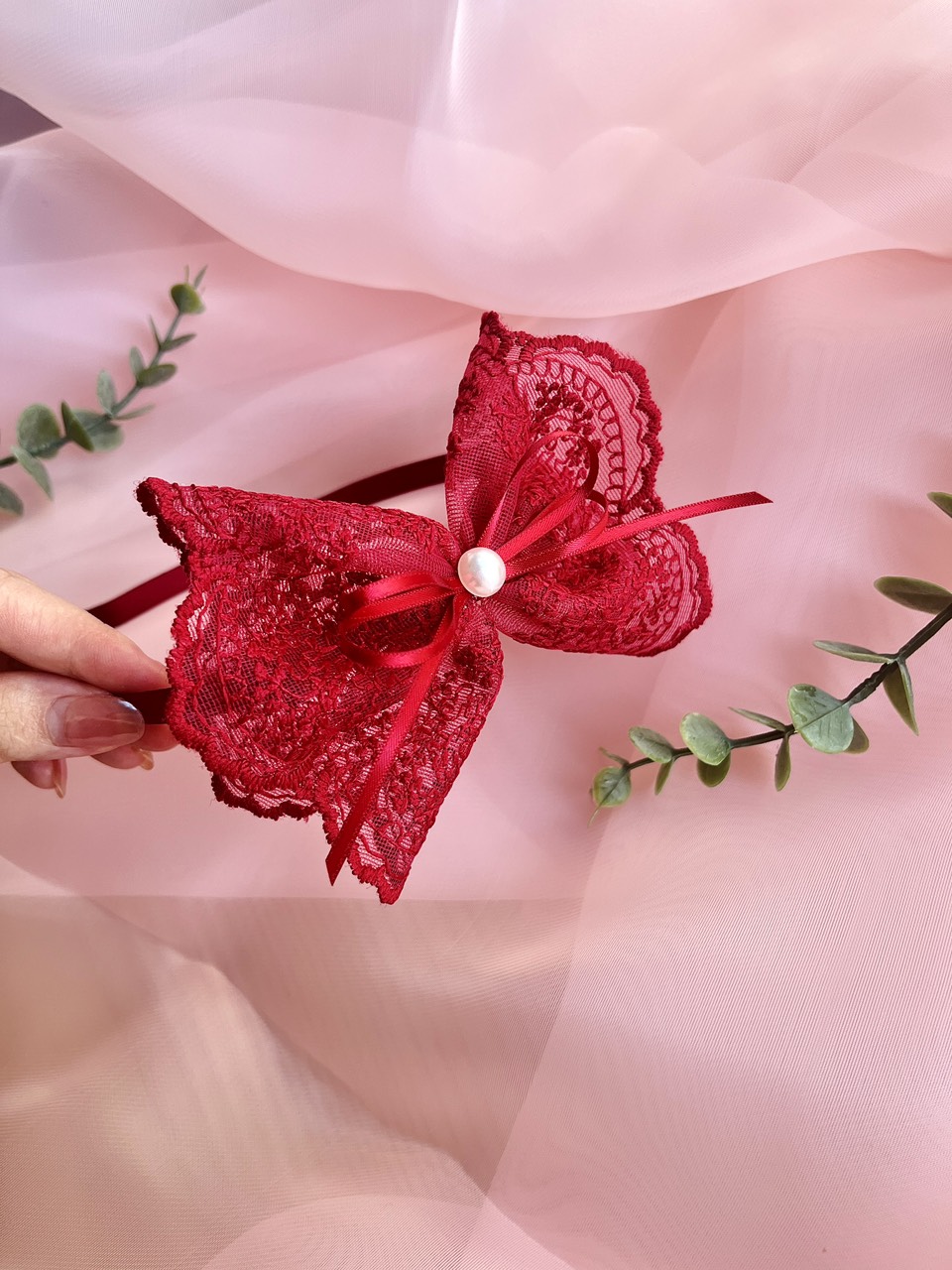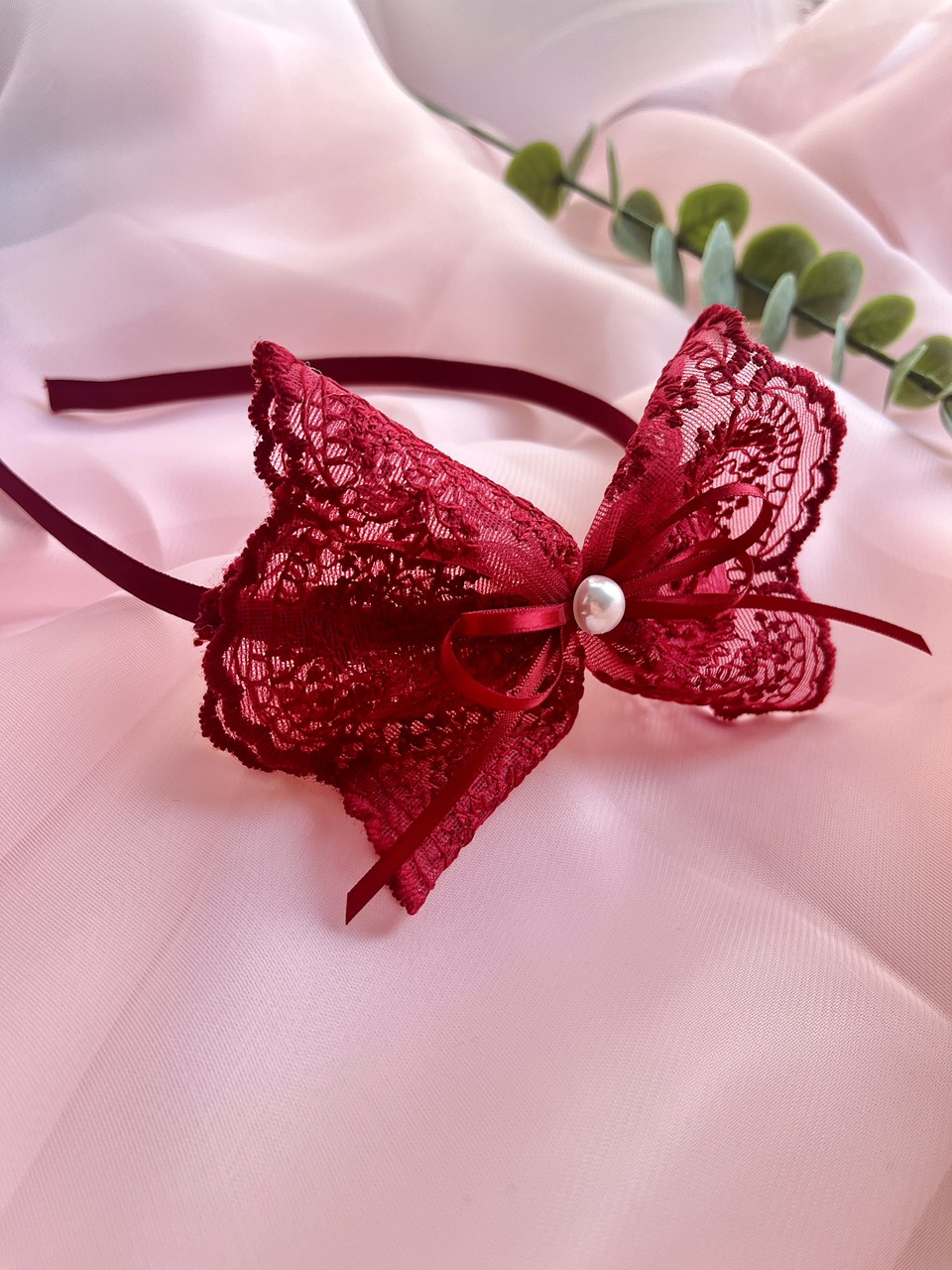 Bờm tóc nơ ren đính ngọc trai sang chảnh nổi bật cho bé gái
