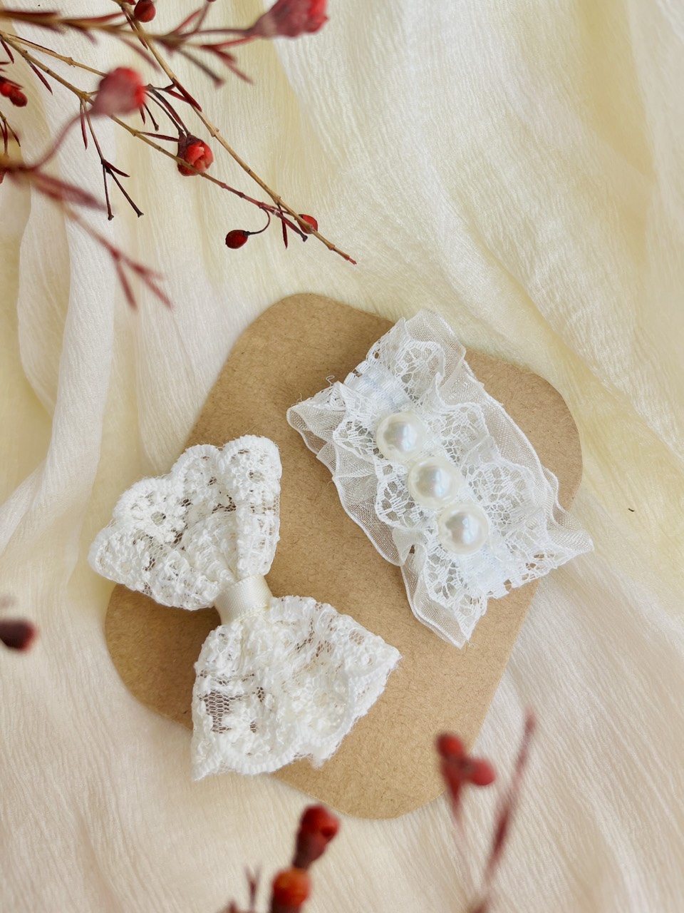 Kẹp tóc handmade ren tiểu thư đính ngọc trai tone trắng sang chảnh