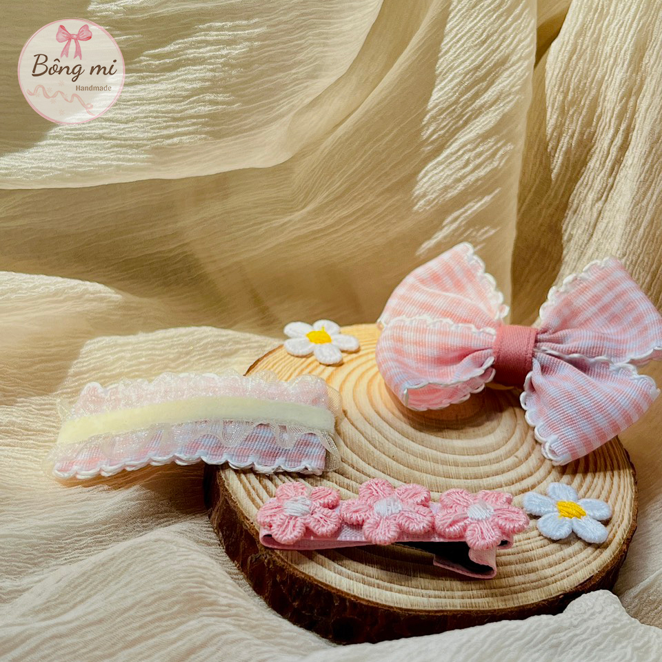 Set kẹp mái tone hồng dễ thương cho bé gái