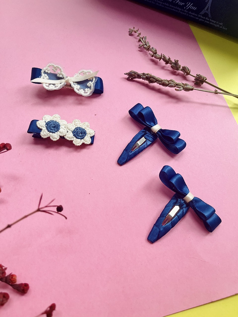 Set kẹp nơ tone navy sang chảnh cho bé